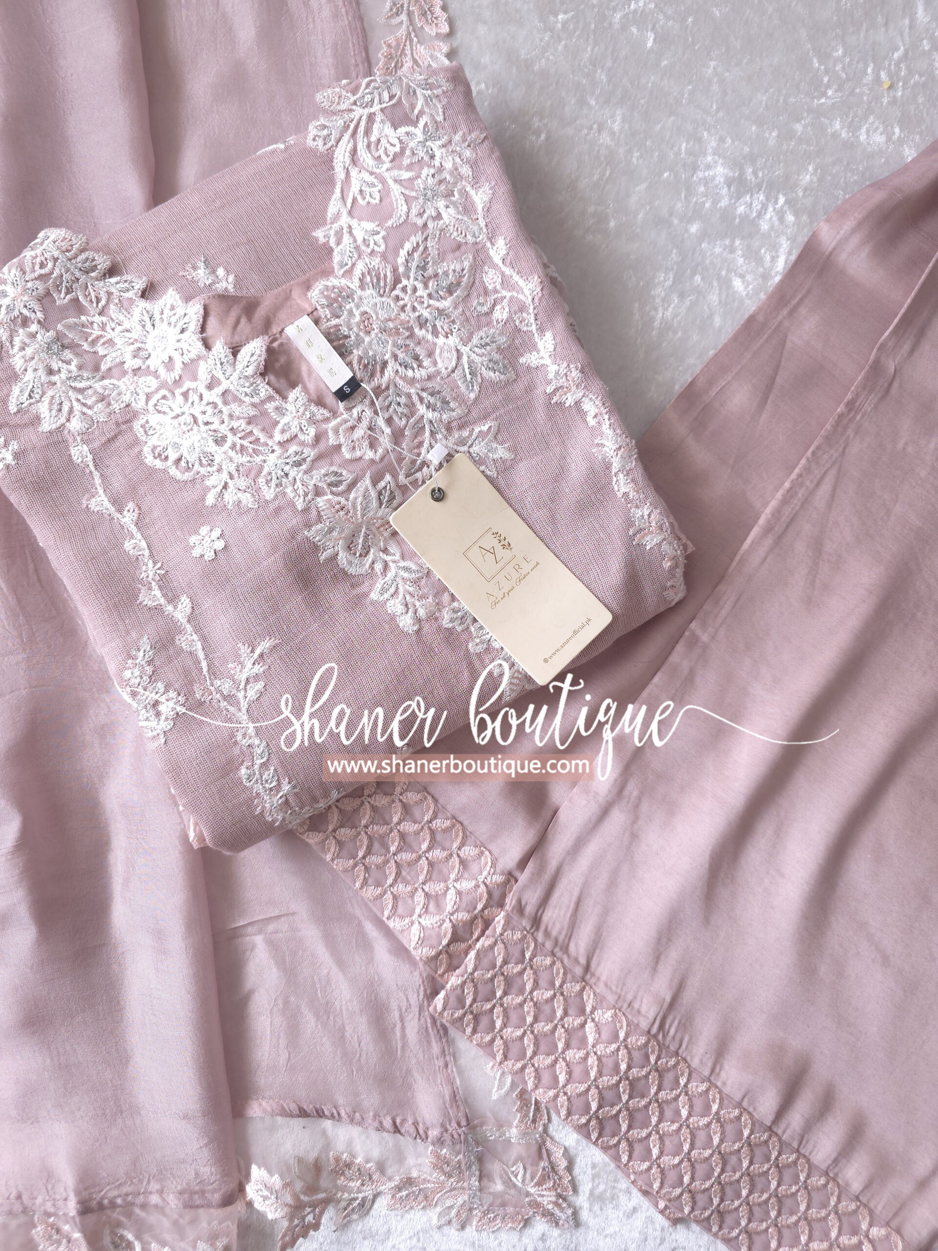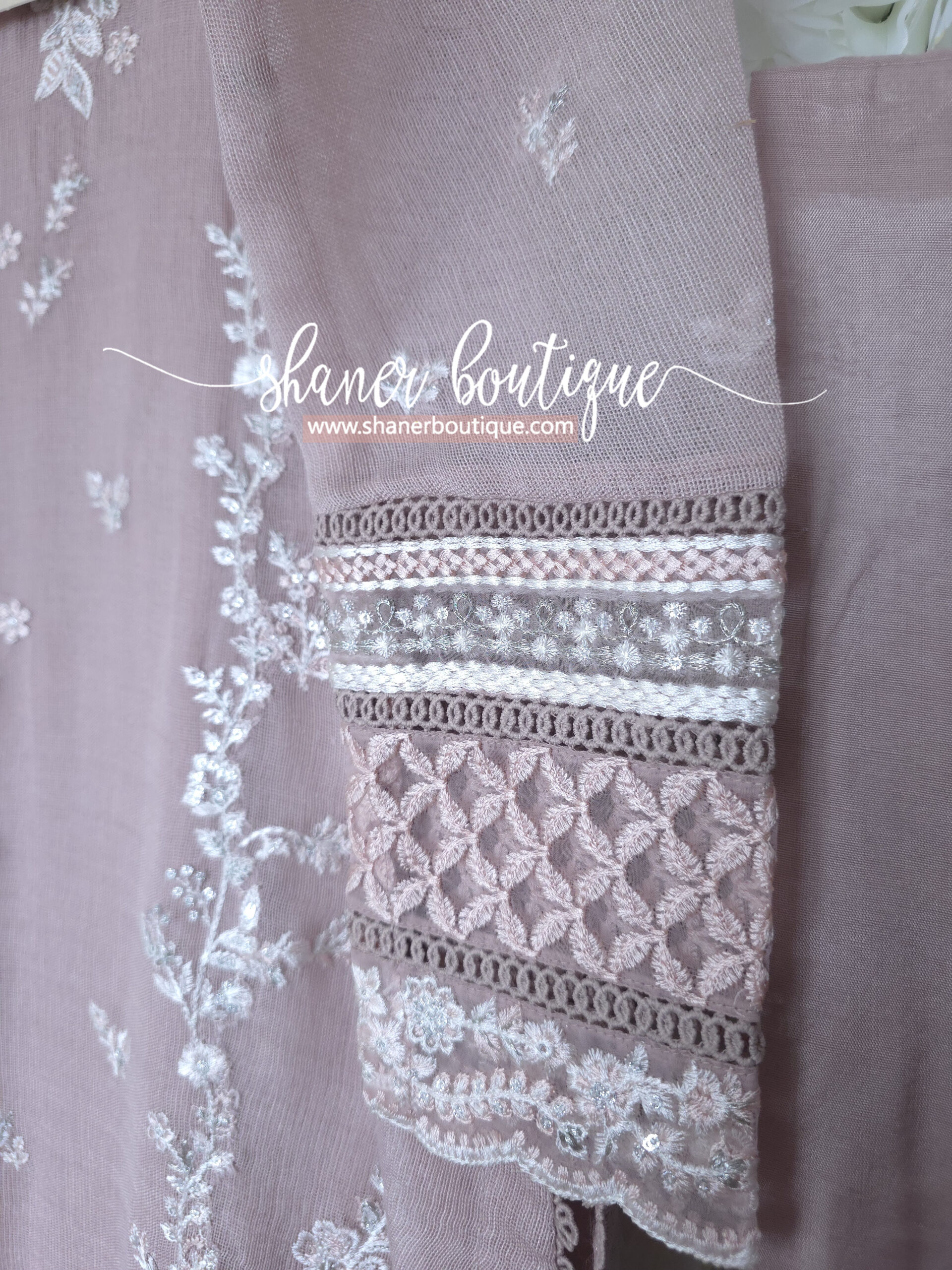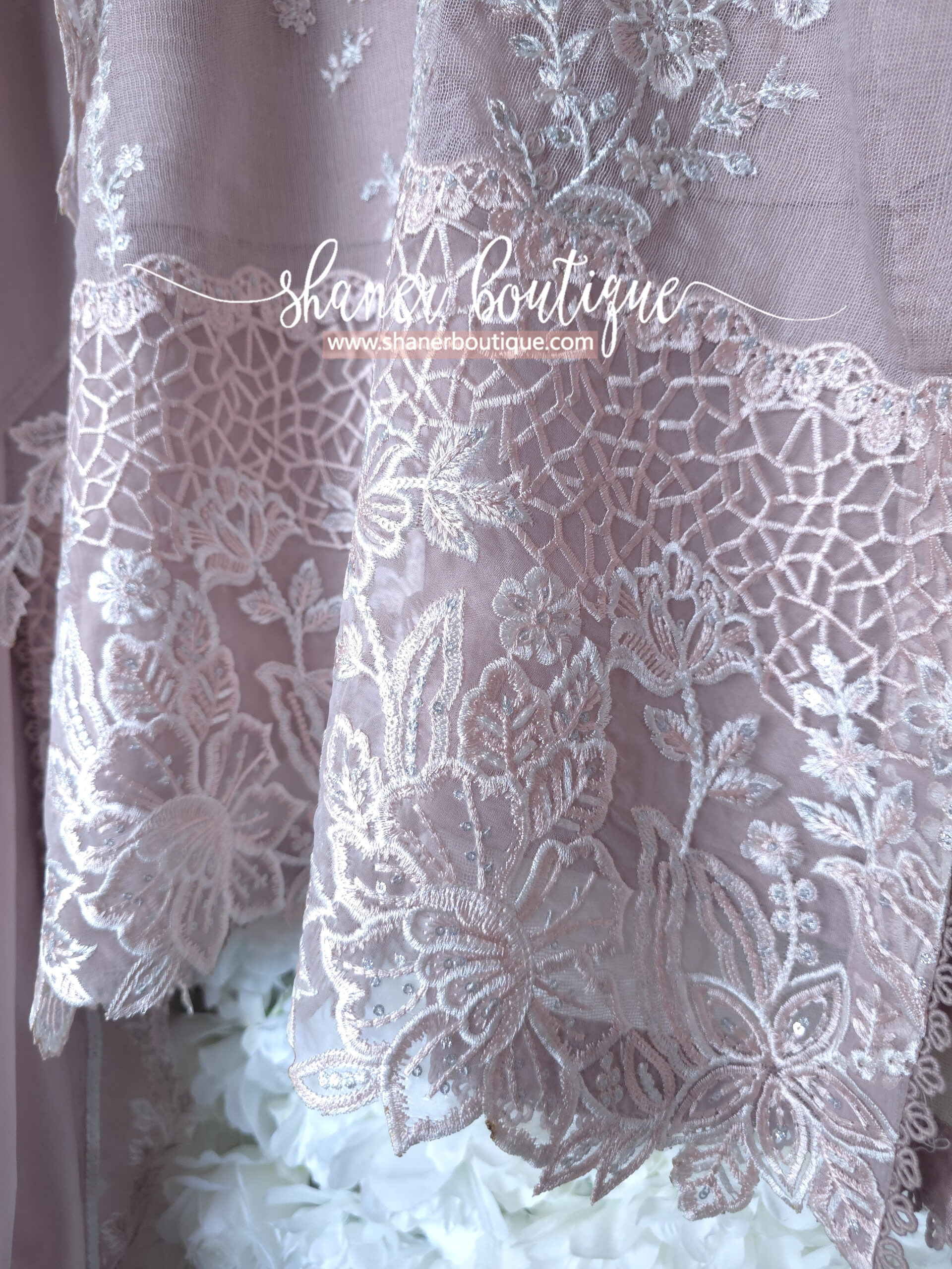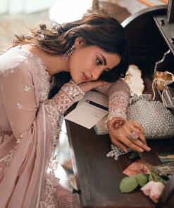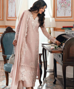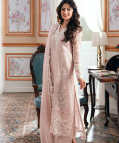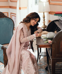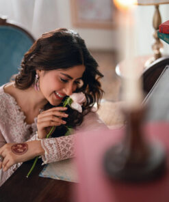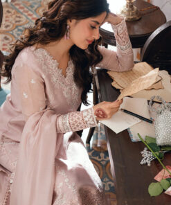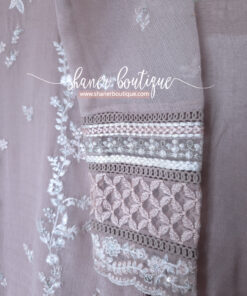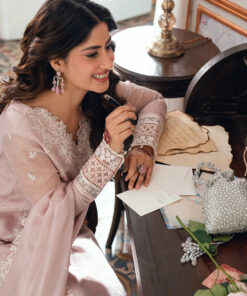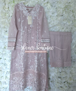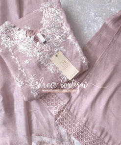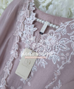 DESCRIPTION: Rosebud is a soft onion-pink khaddi net, with cotton silk trouser & viscose silk dupatta, radiating delicate femininity.
